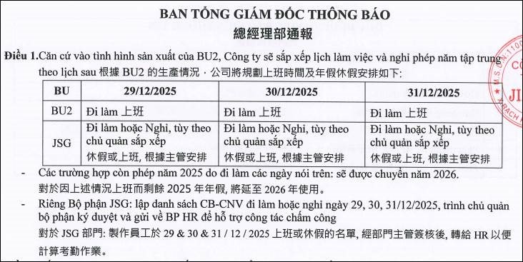 Tập tin 文件: A04-JSGHRMA-2025-090 Thông báo vv điều chỉnh lịch nghỉ phép năm 2025 (BU2)關於調整休2025年假 (BU2).pdf