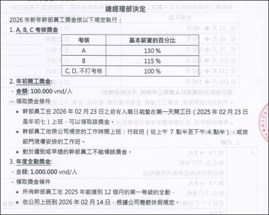 Thông báo tiền thưởng tết Bính Ngọ 2026 - the bonus of the New Year 2026
