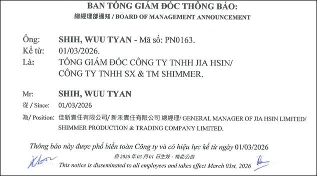 Tập tin 文件: A04-JSGHRMA-2026-015 Thông báo vv công bố Tổng Giám Đốc công ty職務委任 — 總經理.pdf